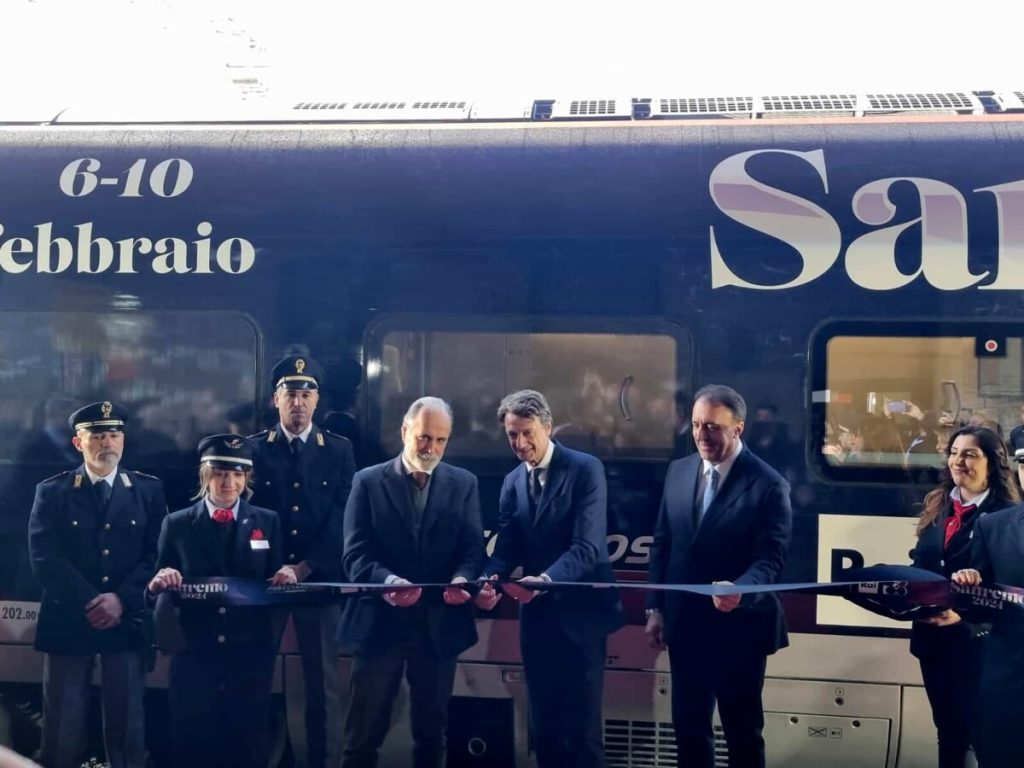 Da Roma Termini è partito un treno speciale. Il Frecciarossa 1000 con una livrea unica dedicata a Sanremo 2024 porterà i giornalisti e i dipendenti Rai alla manifestazione canora più celebre d’Italia.
