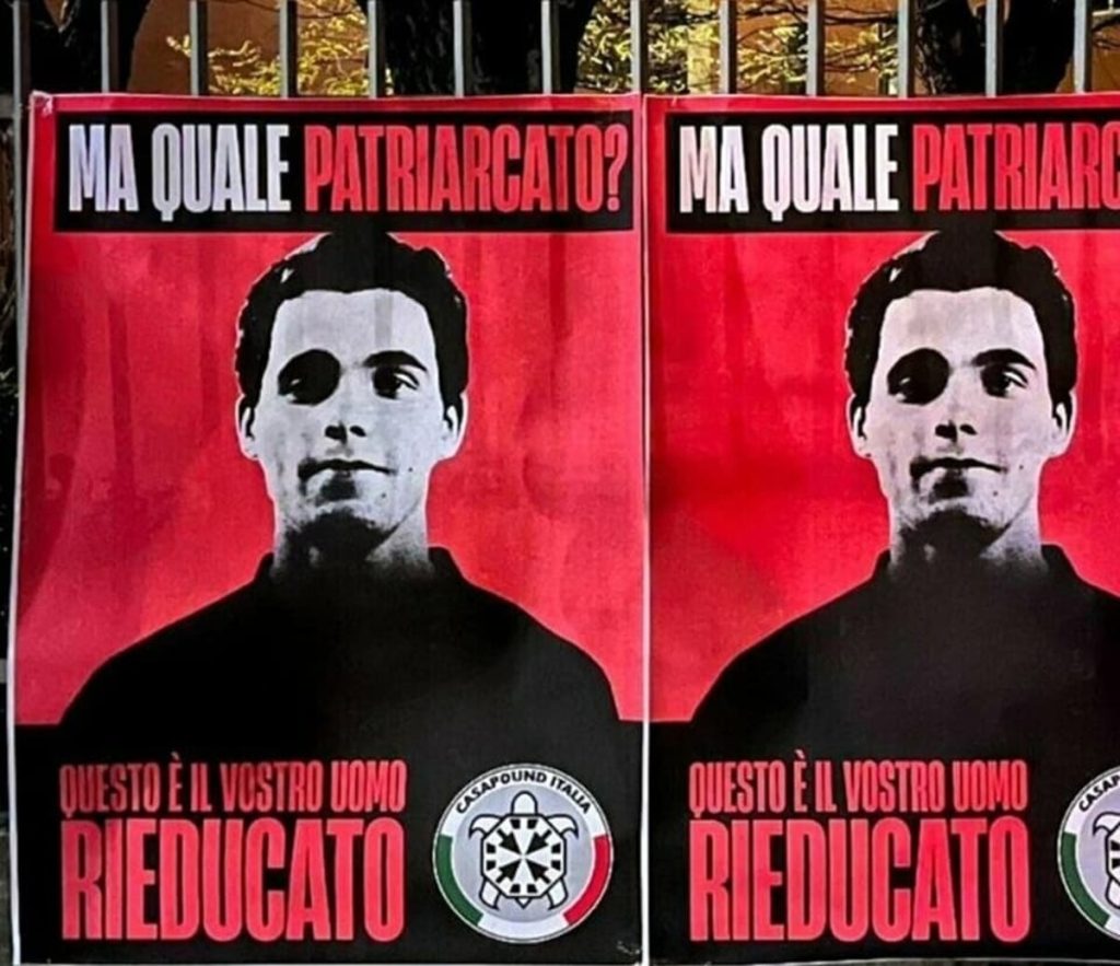 “Ma quale patriarcato, questo è il vostro uomo rieducato”. E’ questa la scritta che campeggia, insieme al volto di Filippo Turetta, su decine di manifesti comparsi nelle ultime ore in tutta Roma. La campagna di affissioni è firmata da CasaPound Italia, organizzazione politica neofascista.
