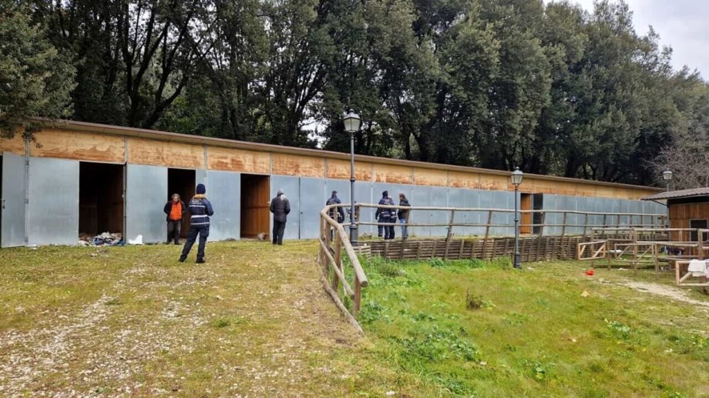 Incendio a Villa Borghese. Alta la colonna di fumo conseguenza delle fiamme divampate nel primo pomeriggio di oggi nell’area del galopppatoio. Il rogo ha interessato due stalle in disuso ed ha preso forza rapidamente.