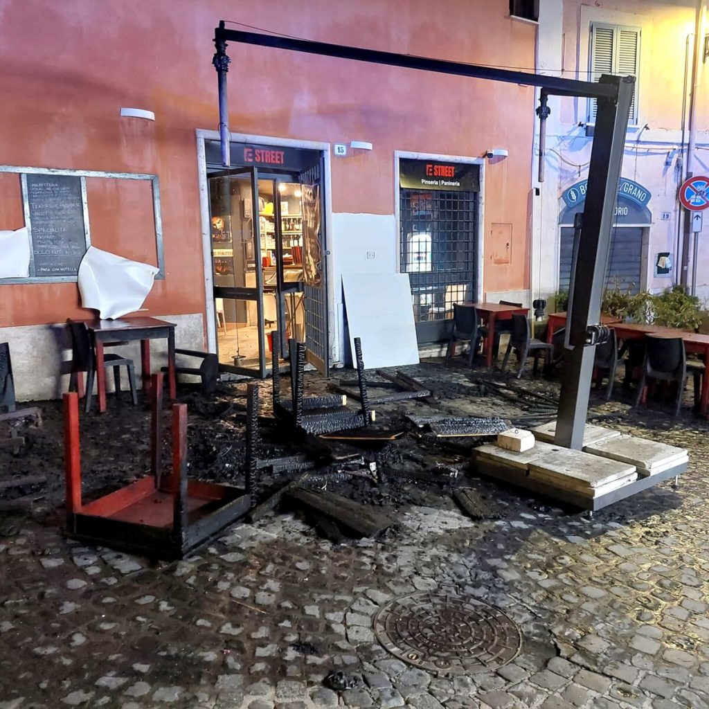 Incendio distrugge arredi esterni della pinseria: “È il quarto atto intimidatorio”