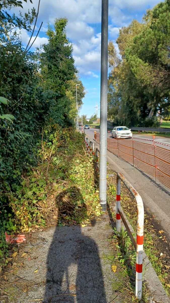 La ciclabile che da un mese è interrotta perché nessuno raccoglie i rami tagliati