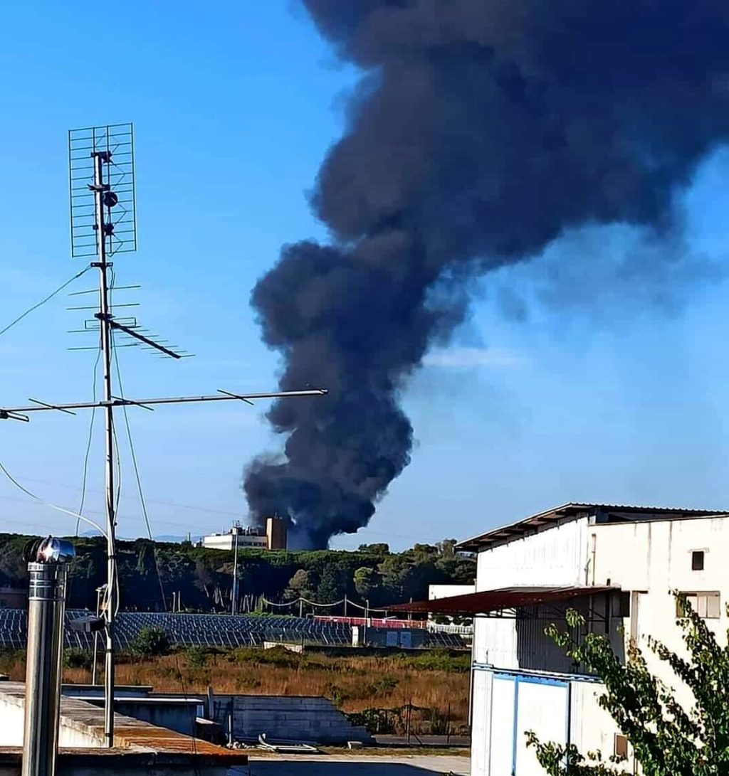 Maxi incendio deposito di rifiuti della Ecoimballaggi, colonna di fumo nero su tutto il litorale