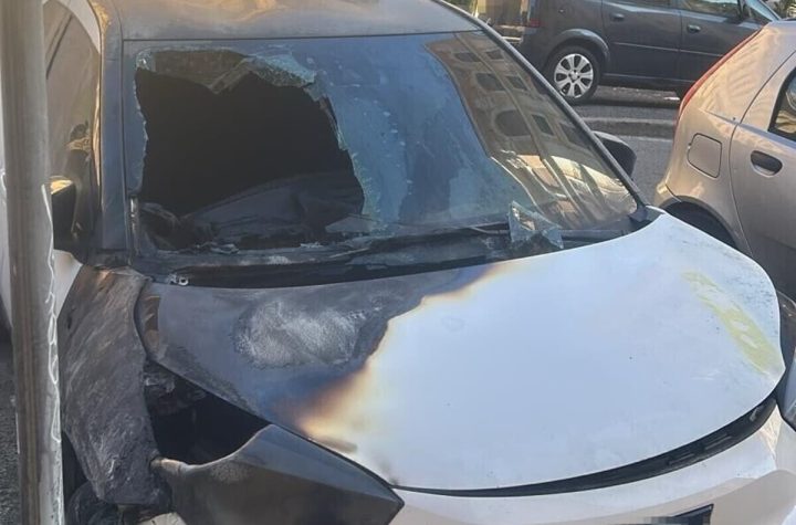 Notte di fuoco nel centro di Roma. Un’auto è stata avvolta dalle fiamme in...