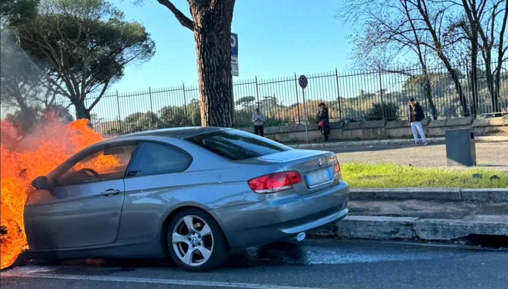 Paura in via Leone XIII, accosta e l’auto va a fuoco