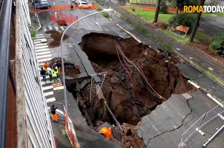 VIDEO | Non c’è pace per la voragine del Quadraro: esplode una conduttura dell’acqua e crolla ancora