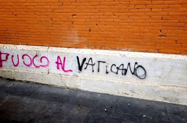 Scritte contro il Vaticano e per la Palestina, simboli transfemministi e anarchici sono comparsi...