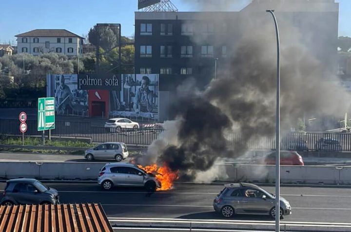 Una palla di fuoco al centro della via Tiburtina. Un’auto in fiamme. Il rogo...