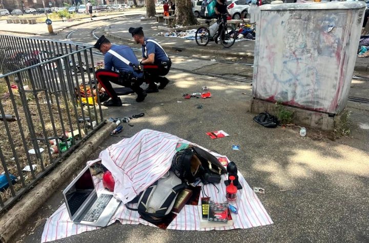 Un mercatino abusivo, allestito sul marciapiede e sulle aree verdi di piazza Porta Maggiore...
