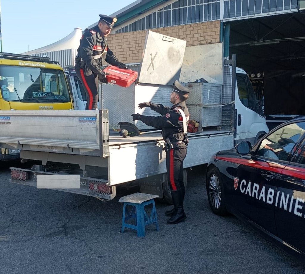 Incastrati dal segnale Gps installato sul furgone rubato alla ditta edile di Guidonia. Un possibile colpo da oltre 20mila euro fallito. Rintracciato l’autocarro i carabinieri hanno denunciato due uomini di 19 e 38 anni.